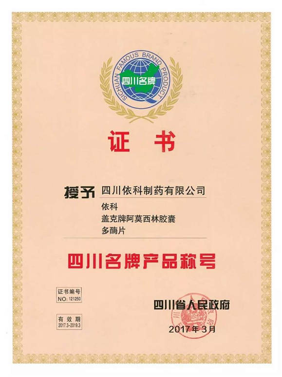 公司高度重视品牌战略,依法注册了“盖克”、“蜀中”、“三星堆”、“阿莫锋”、“益善源”、“蓉通”、“尊龙凯龙时官网进入网页”等108件注册商标,1999年“盖克”、2003年“蜀中”、2007年“三星堆”被认定为德阳市知名商标,2001年“盖克”、2004年“蜀中”被认定为四川省著名商标, 2008年“盖克”商标被国家工商行政管理总局认定为“中国驰名商标”。2017年3月,公司盖克牌、尊龙凯龙时官网进入网页牌阿莫西林胶囊和多酶片被四川省人民政府授予四川名牌产品称号。2016年,公司实现营业收入66373万元,利税7600万元;2017年,公司实现营业收入75045万元,利税7572万元。公司2017年被命名为德阳市第七批院士专家工作站,2016-2018连续三年被德阳市人民政府确定为重点龙头企业。